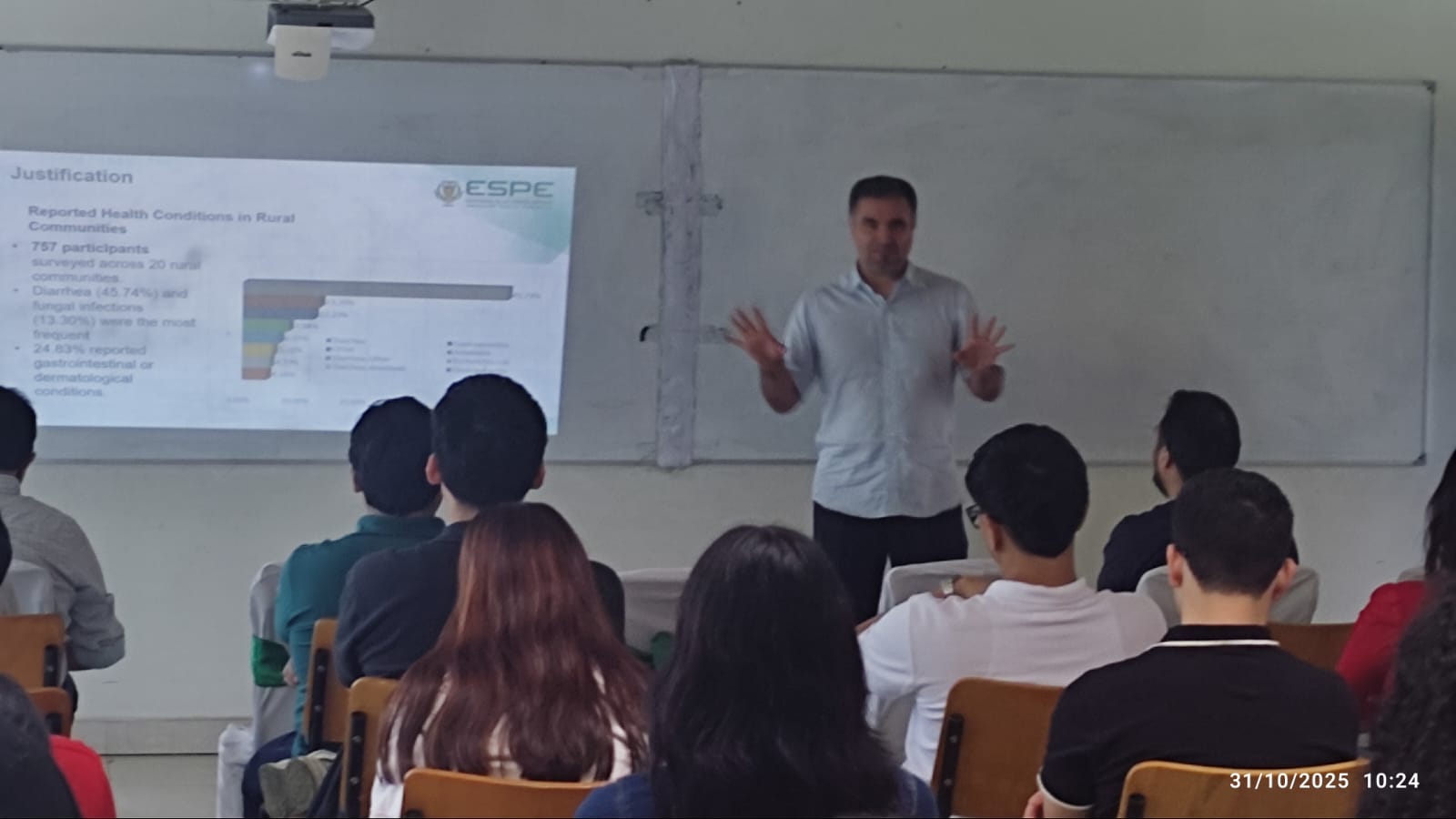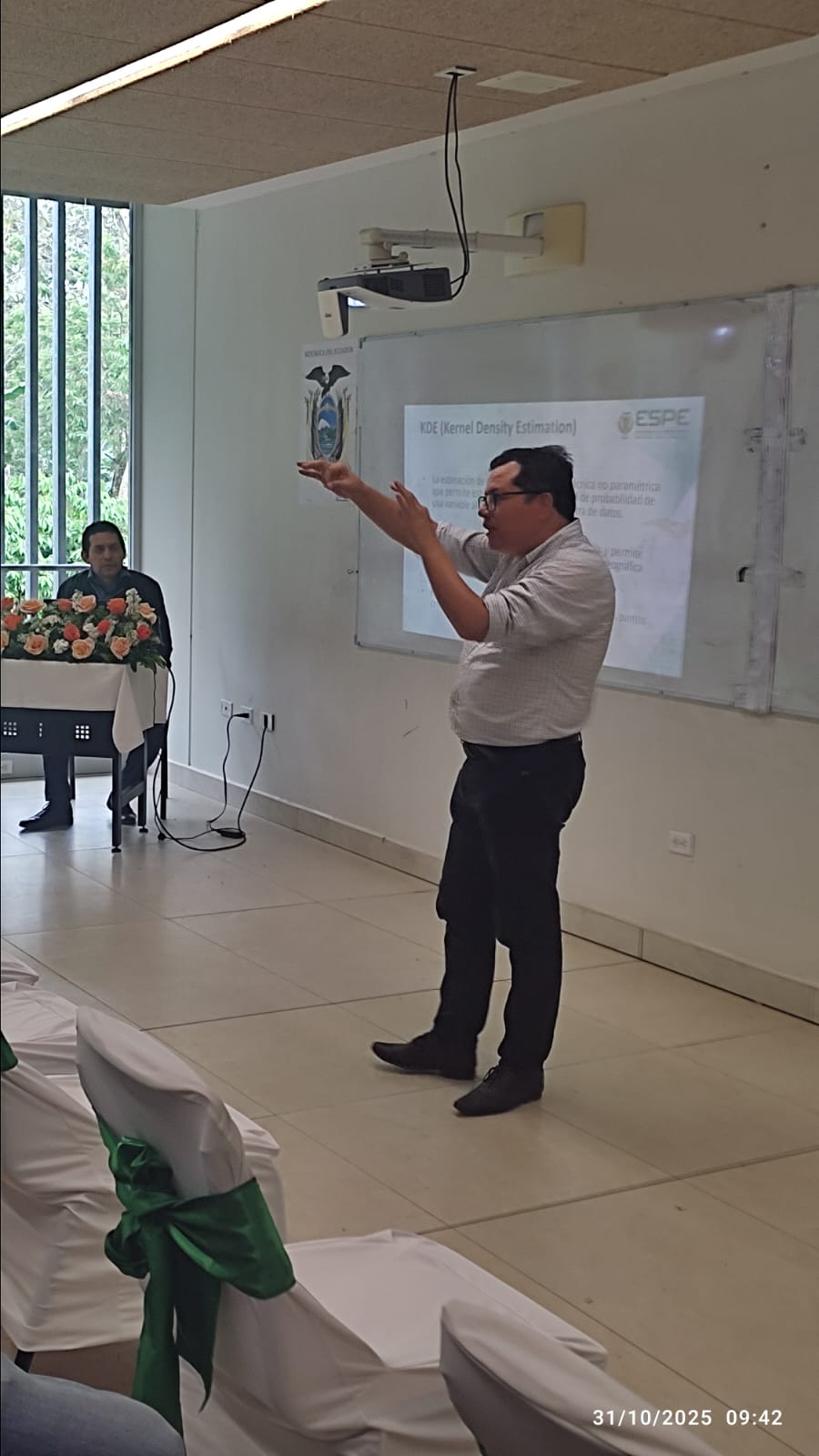 La participación del Departamento de Ciencias Exactas en el evento “ESPE, Investiga, Lidera e Impacta” se desarrolló en modalidad presencial en la Universidad de las Fuerzas Armadas ESPE Sede Santo Domingo. En este espacio se realizó la difusión de los resultados del proyecto de vinculación “Diagnóstico de la calidad de agua en Puerto Limón”, a cargo del Magíster Mayckel Calero y el Magíster Fernando Vinueza.
